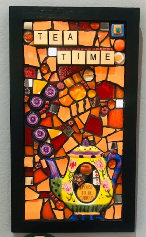 Title: Tea Time Artist: Joyce Wagner Media: Mosaic Wall Hanging